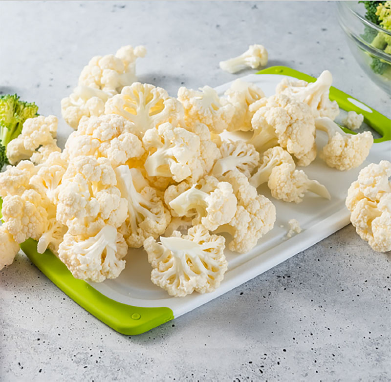 Experience the ultimate taste and culinary quality with our delicate pure white cauliflower perfect for roasting, grilling, sauteing, or steaming. Available in florets of different sizes or as riced cauliflower. Sizes: 20 - 40 – 60 – 80 (glazed – unglazed).